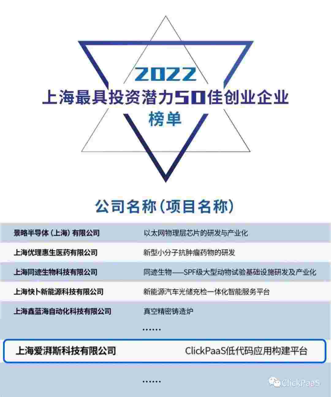 美团钱包商家版 作为国内低代码PaaS平台的领军企业,,与120家创企入围角逐。。。。期间接受了来自德同资本、、、、领中资本等知名投资机构的10位投资人组成专家评委团的背靠背盲选。。并最终入围“2022上海最具投资潜力50佳创业企业”榜单,,,,被列入“上海市重点培育创业企业库”。。