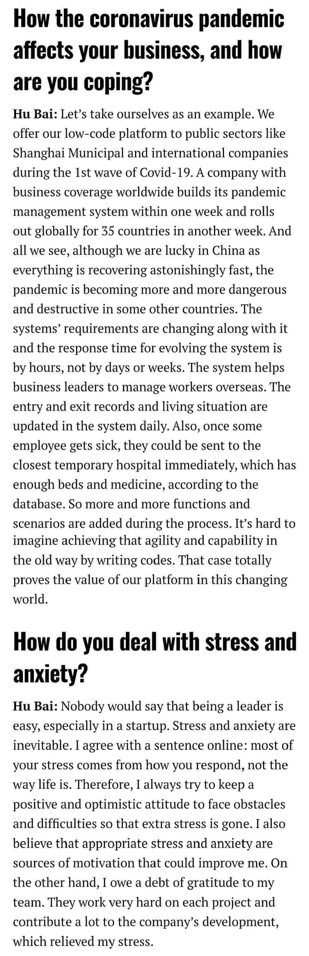 2021年年初,,,爱湃斯科技CEO胡柏受邀接受法媒Startup.info的专访,,与Startup info的读者分享了自己的创业经历、、、、以及低代码平台美团钱包商家版的创新之处。。。